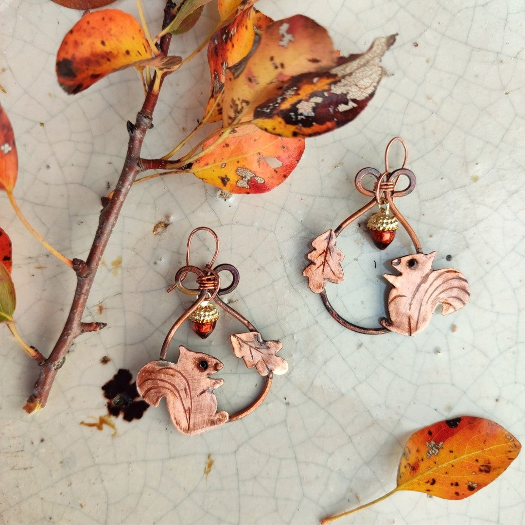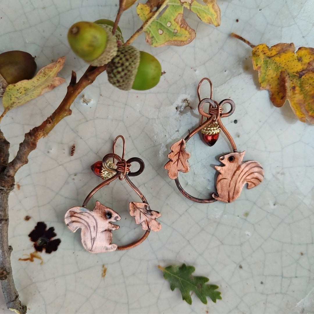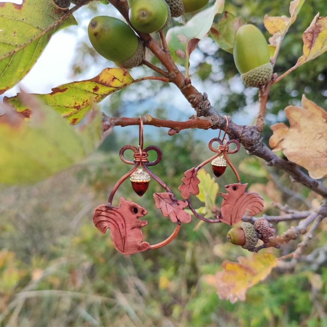 Una ghirlanda di rame che racchiude piccoli mondi, scoiattoli curiosi si arrampicano tra i rami di quercia intenti a collezionare ghiande con l'aria di chi sa cosa sta facendo.
