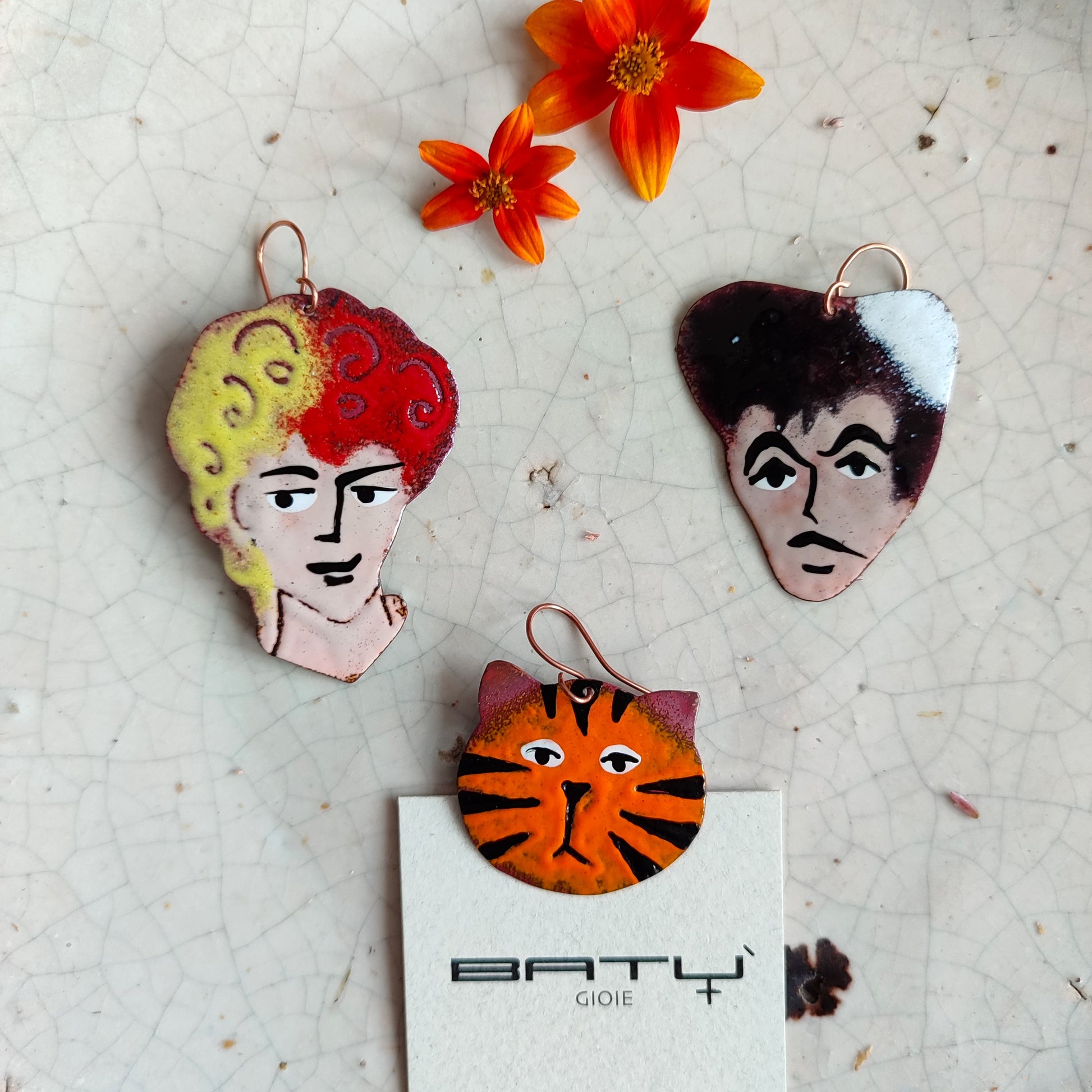 Realizzati interamente a mano in RAME smaltato, dettagli dipinti a mano, la monachella è di rame NICKEL FREE . Il retro è liscio color rame.
