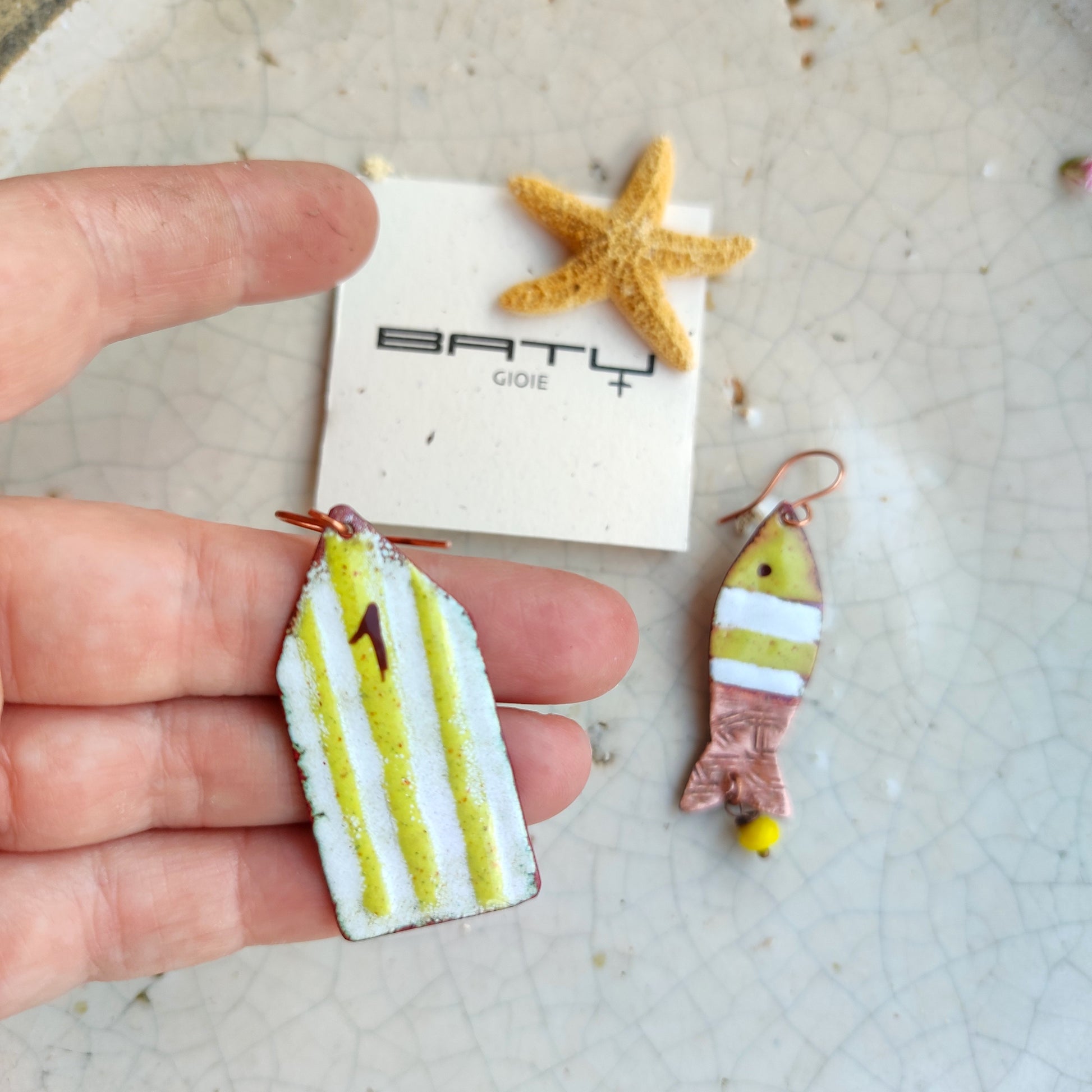 Questi orecchini sono per i sognatori, per chi ha un'anima vagabonda e uno spirito libero, per chi non ha paura di esprimere la propria unicità in modo giocoso e leggero. Con i loro colori sgargianti e il design originale, sono un inno alla libertà e alla creatività.