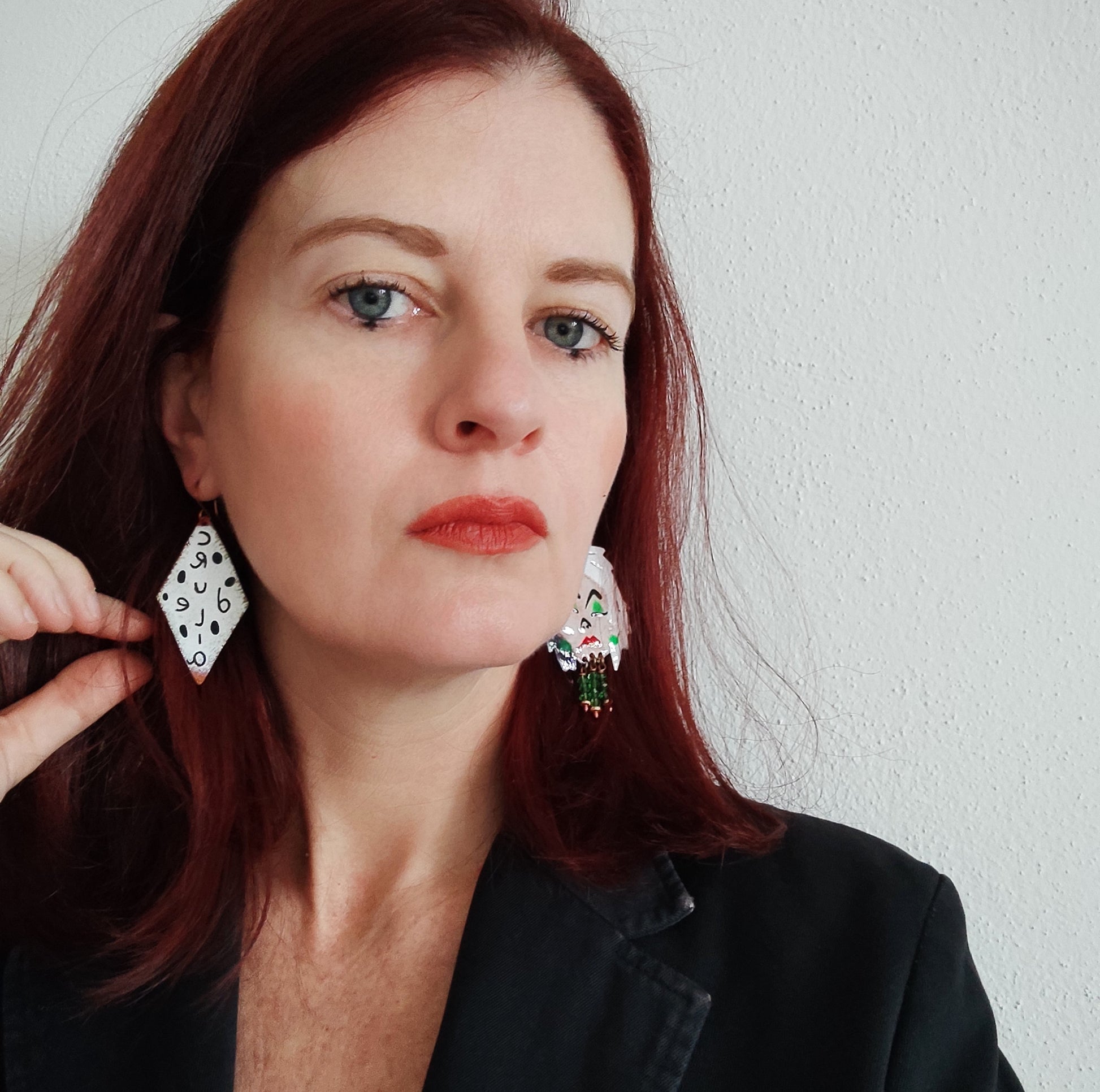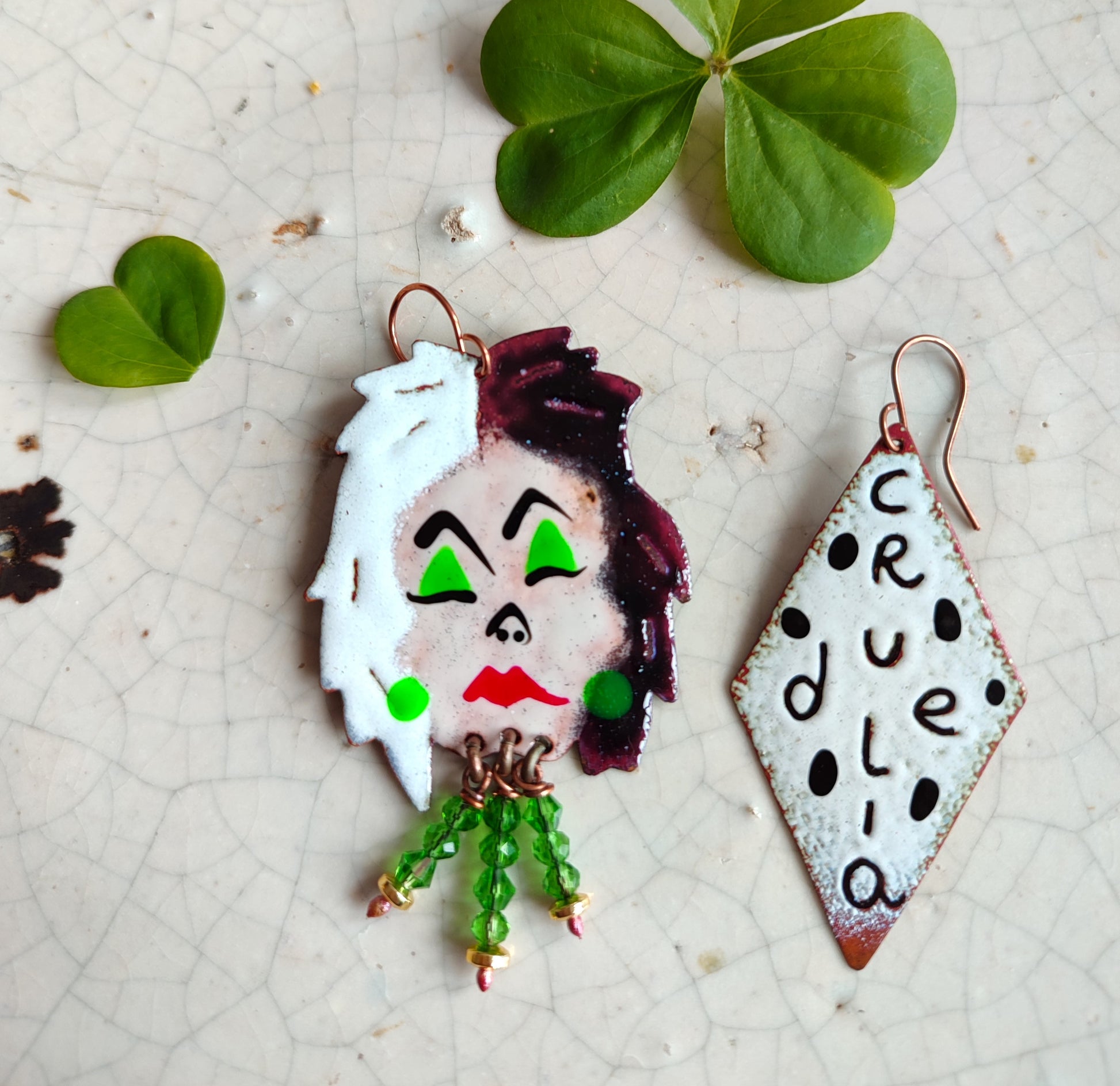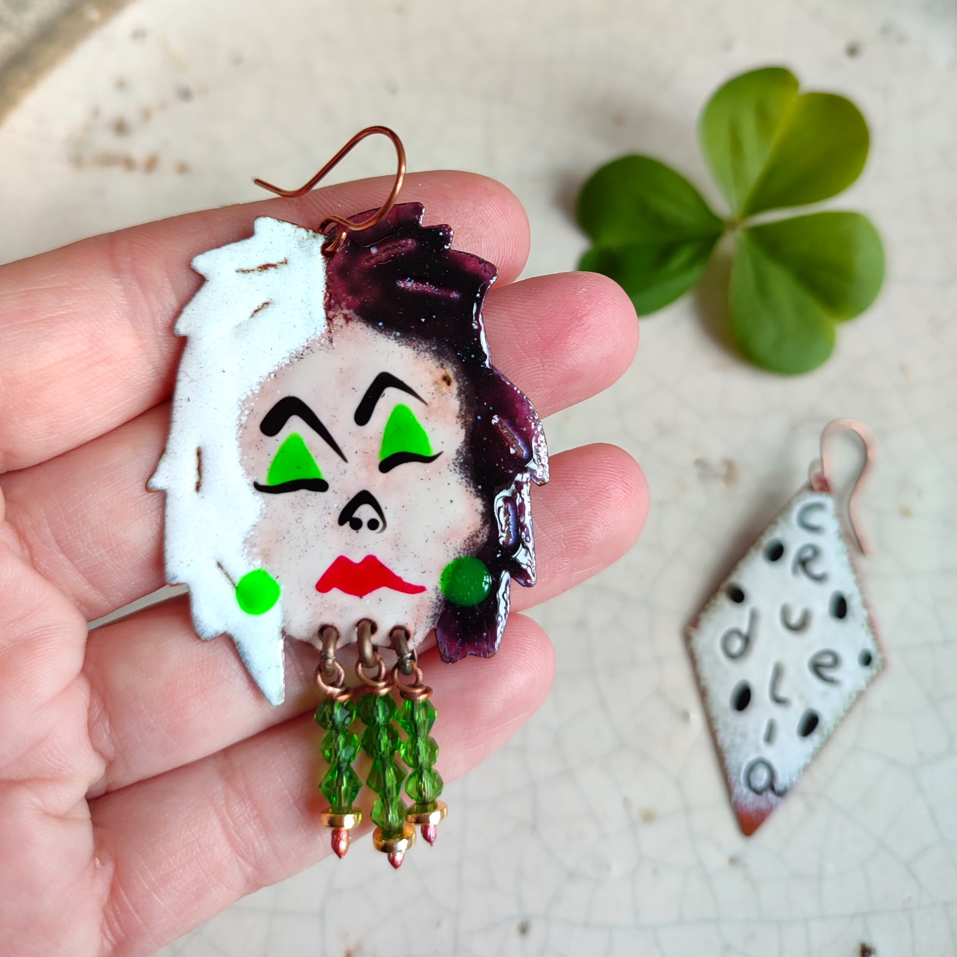 Realizzati interamente a mano in RAME smaltato e cristalli mezzi verdi dipinta a mano. La monachella è di rame NICKEL FREE . Il retro è liscio color rame.