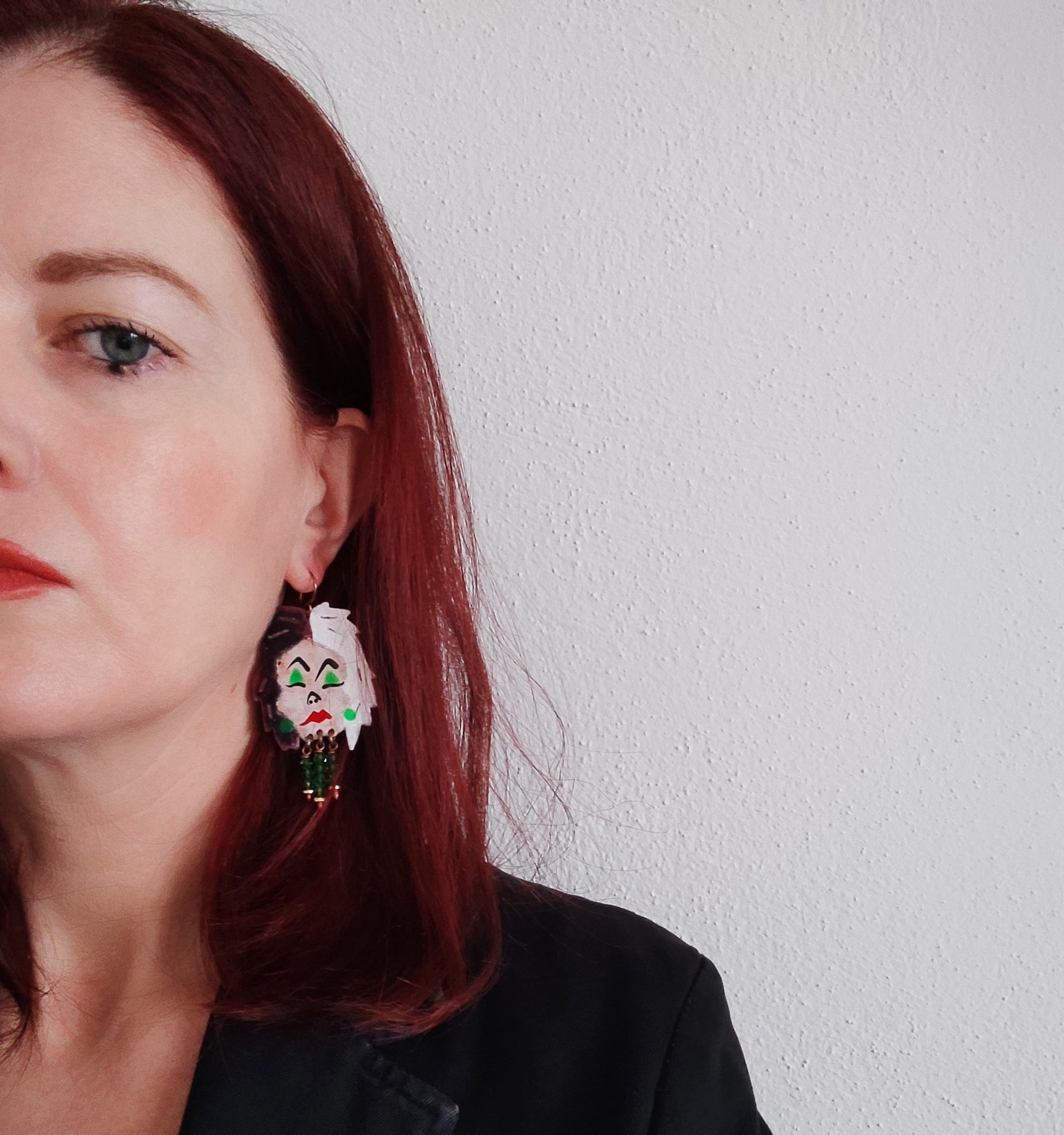 Crudelia De Mon non ha bisogno di presentazioni, è una icona di stile e originalità, carattere ed eleganza, è singola abbinata ad un rombo che ne riporta il nome. Ombretto verde e cristalli verdi richiamano il look del Cartoon.
