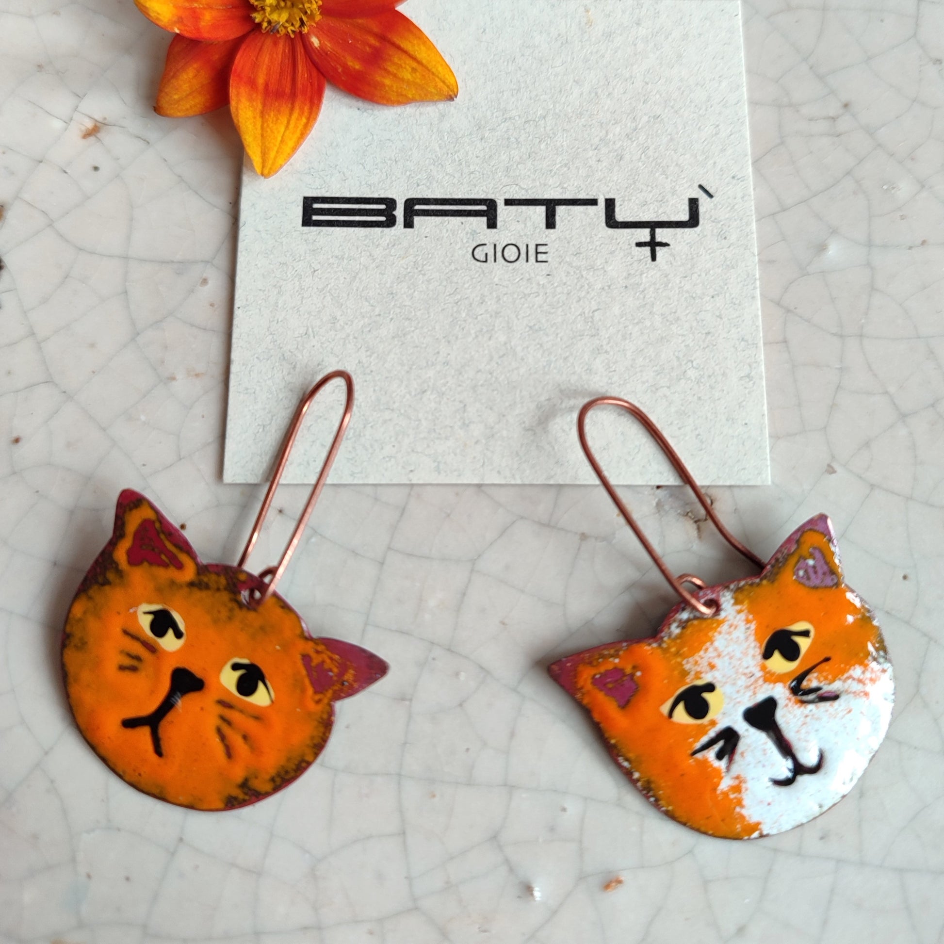 Realizzati interamente a mano in RAME smaltato, dettagli dipinti a mano, la monachella è di rame NICKEL FREE. Il retro è liscio color rame.