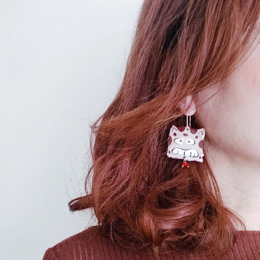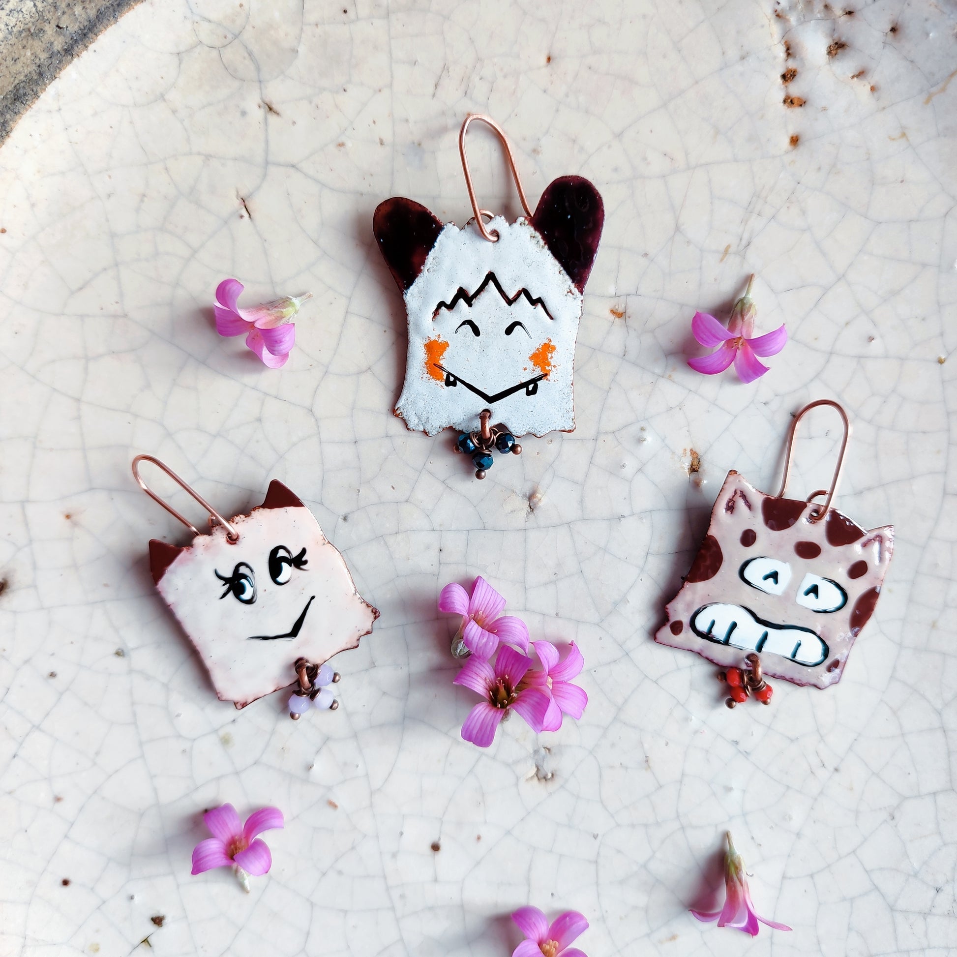 Questi orecchini celebrano proprio lui felice abbinato al suo amico/nemico TORAKIKI che sfoggia il suo ghigno classico a metà tra furbizia e presa in giro e MICIA dolce e snob,il trio perfetto per chi vuole tutti i personaggi da poter abbinare come si desidedera.