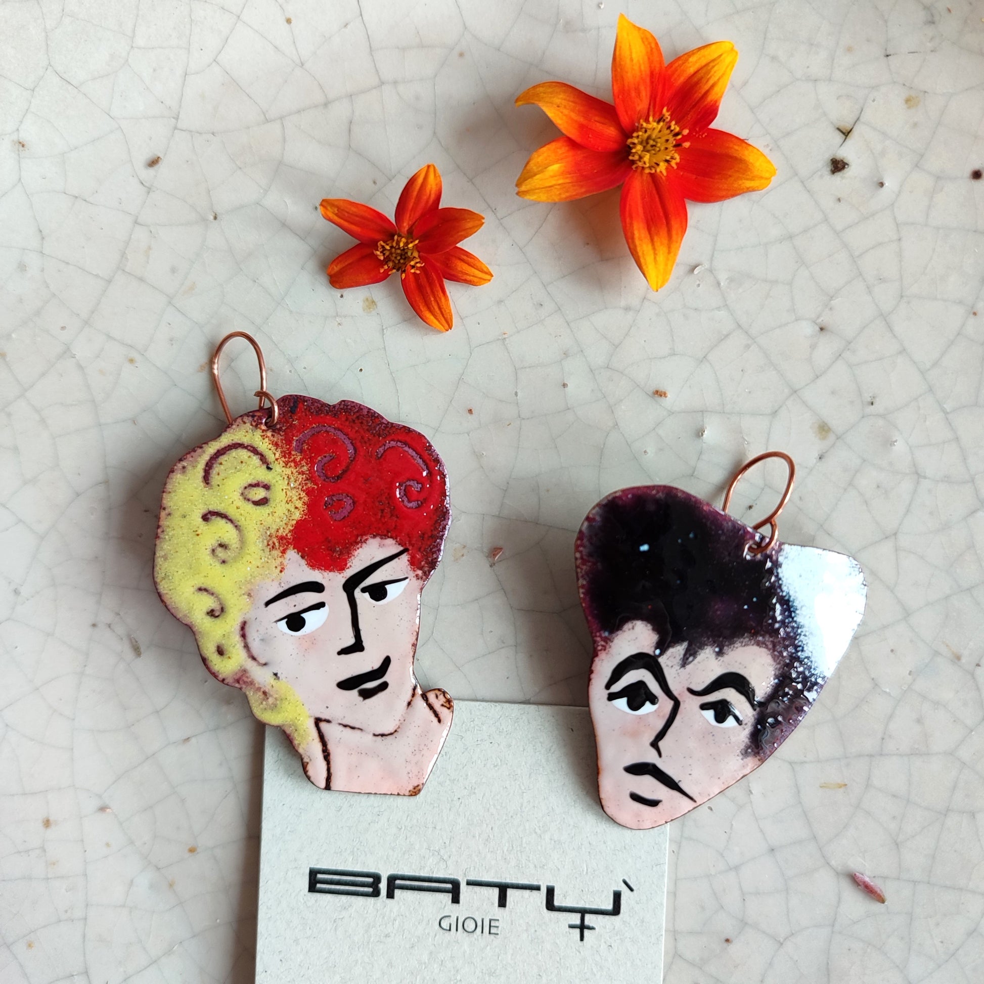 Realizzati interamente a mano in RAME smaltato, dettagli dipinti a mano, la monachella è di rame NICKEL FREE. Il retro è liscio color rame.