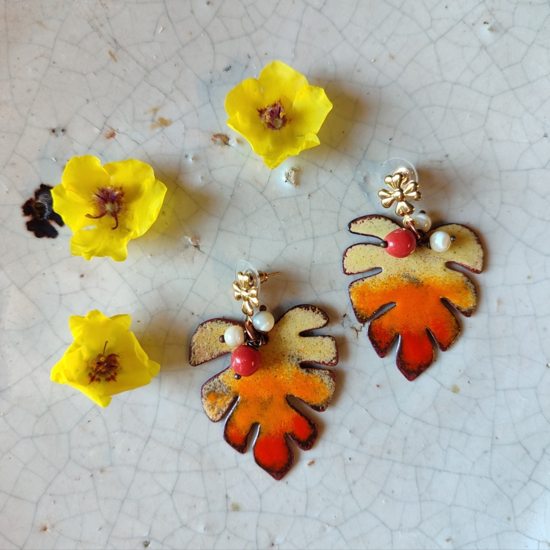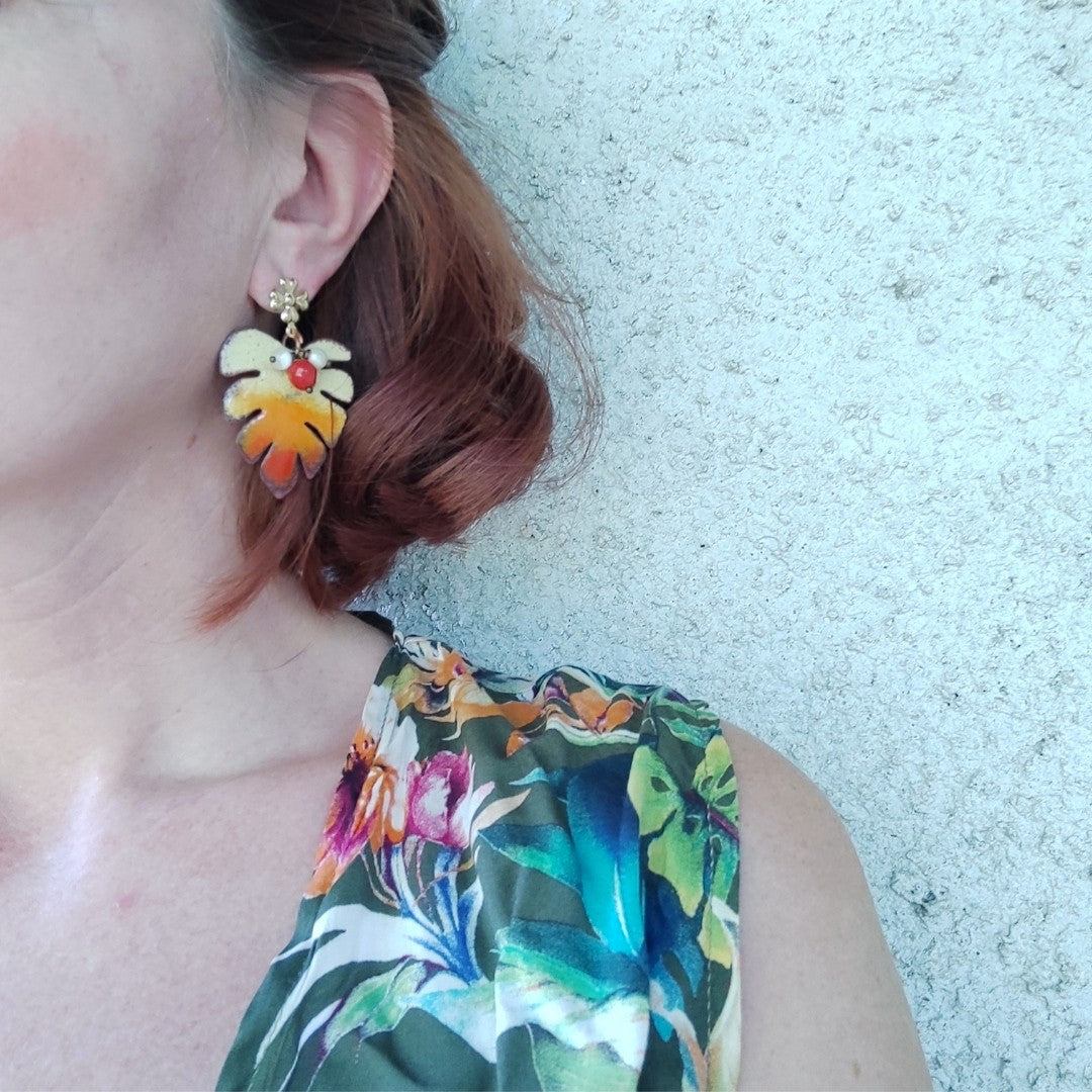 Questi orecchini uniscono eleganza e un tocco esotico sono perfetti per chi ama il design ispirato alla natura tropicale, dal colore caldo e acceso ...