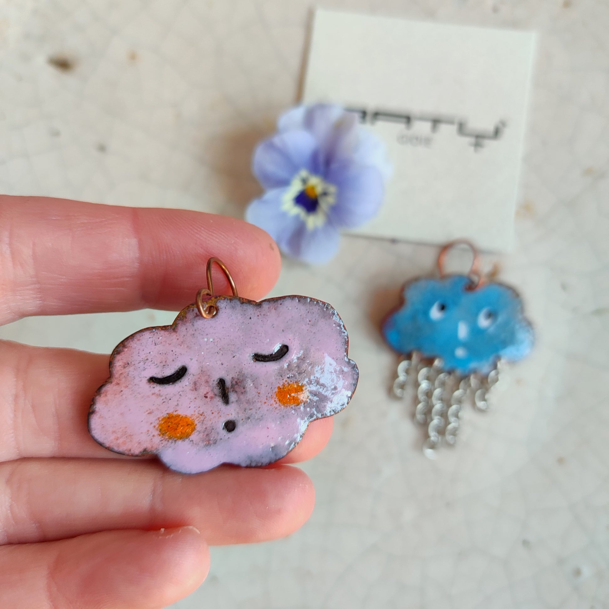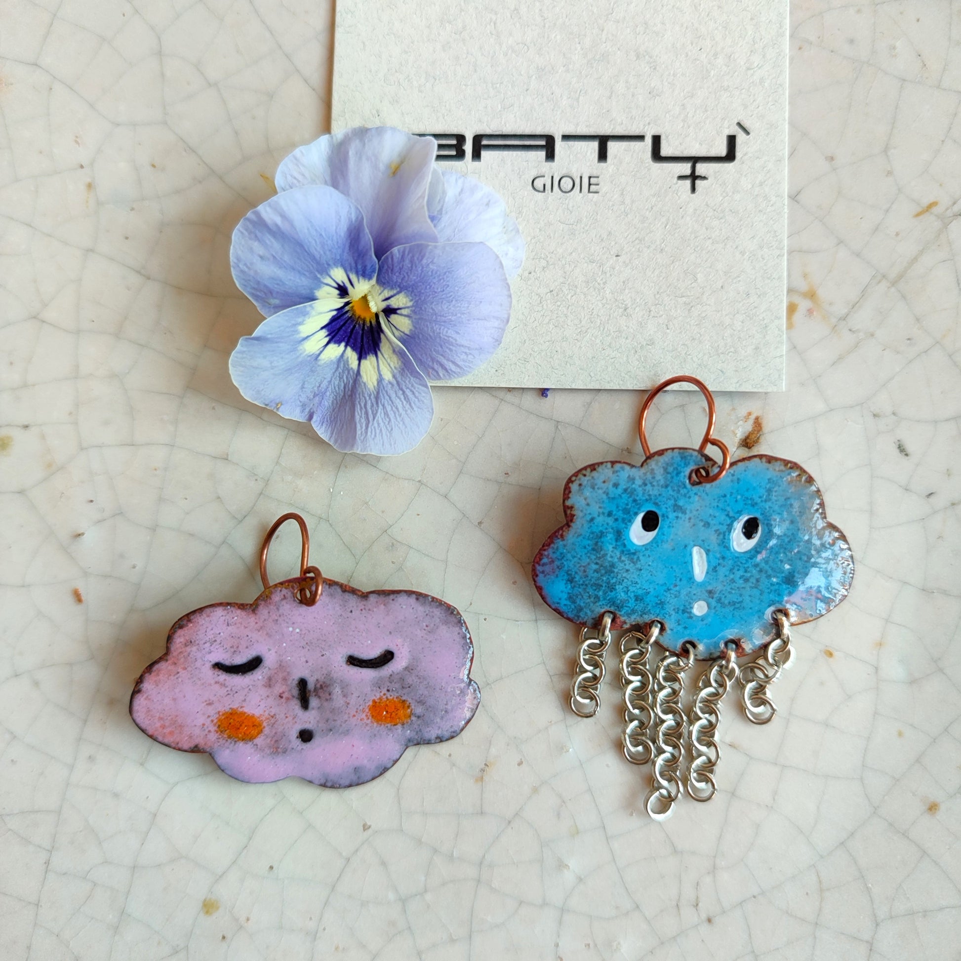 La nuvoletta azzurra con la pioggia e rosa tramonto sono un accessorio che racconta una storia ed uno stato d'animo, dalle espressioni sognanti e curiose. Indossandoli, porterai un pezzo di cielo e un tramonto sempre con te.