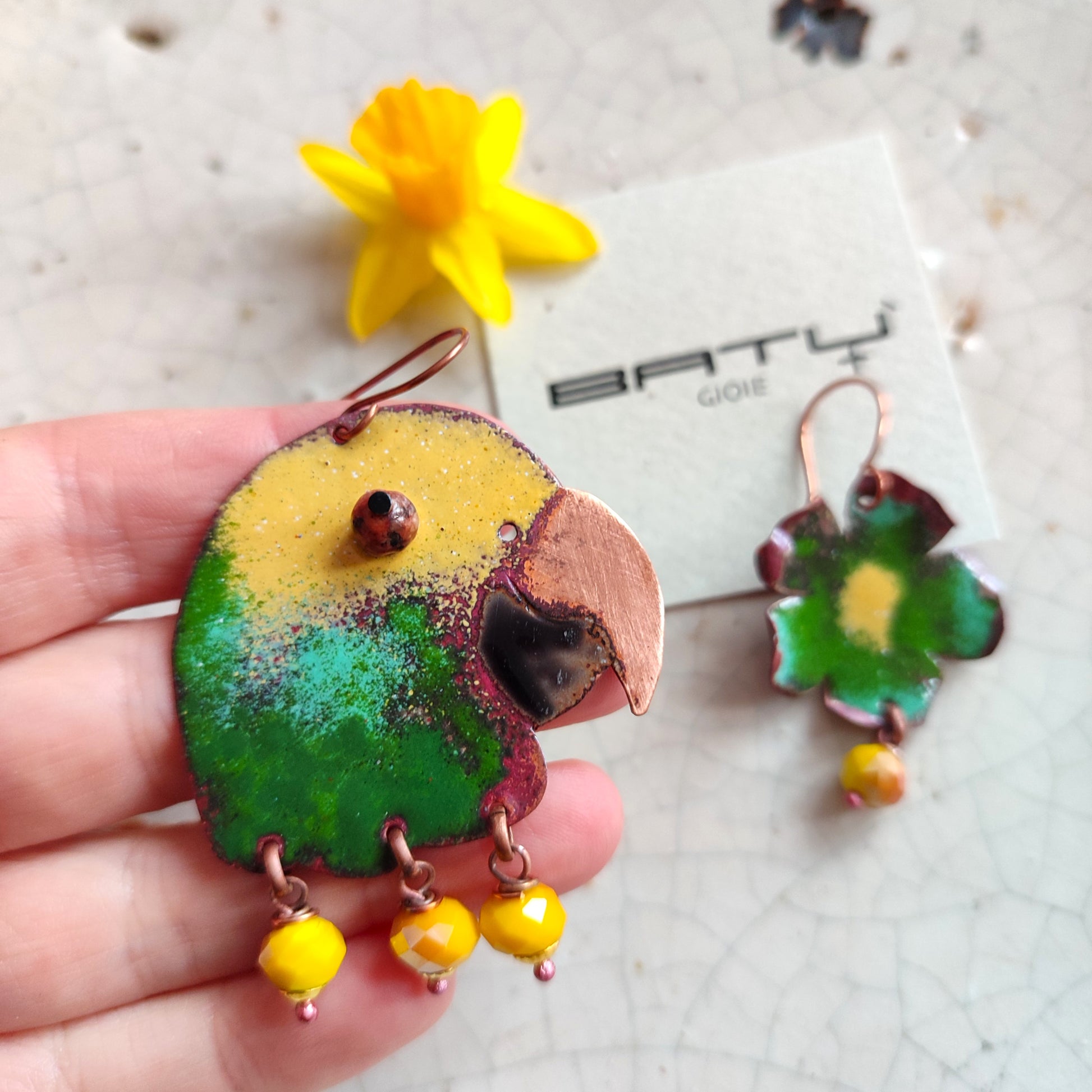 Sono perfetti per chi ama distinguersi con accessori audaci e fuori dal comune. I pappagalli, noti per la loro intelligenza e vivacità, simboleggiano la creatività e la comunicazione. La combinazione di verde e giallo evoca immagini di foreste tropicali lussureggianti e cieli soleggiati, apportando un tocco di esotismo e vitalità.