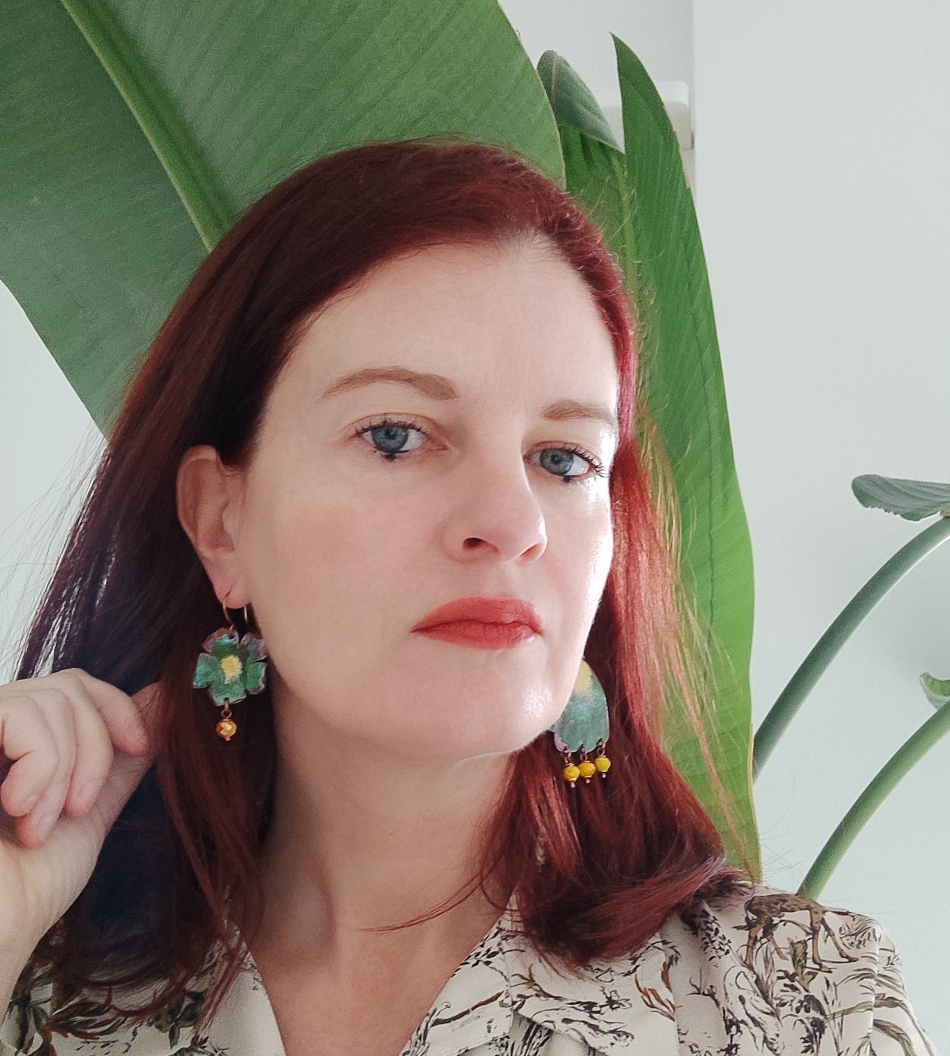 Realizzati interamente a mano in RAME smaltato , con l'aggiunta di mezzi cristalli. La monachella è in rame NICKEL FREE . Il retro è liscio color rame.