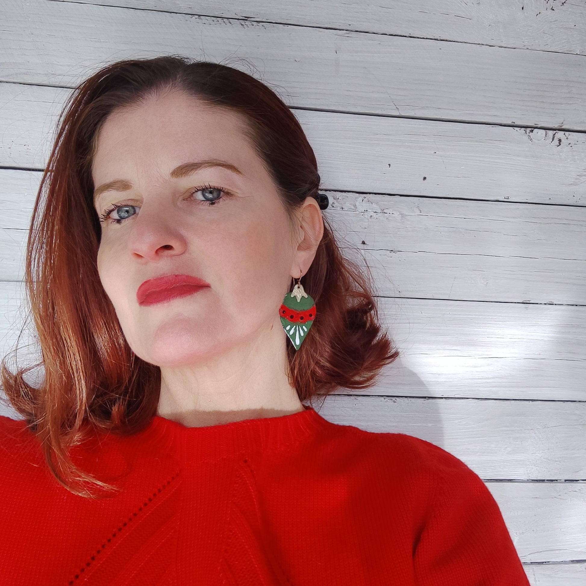 Il verde ed il rosso si rincorrono con micro decori dipinti a mano.