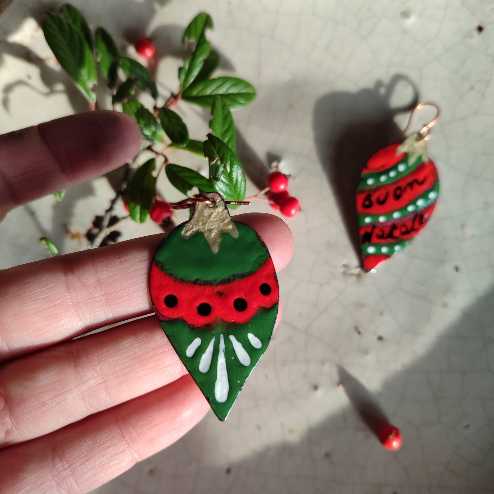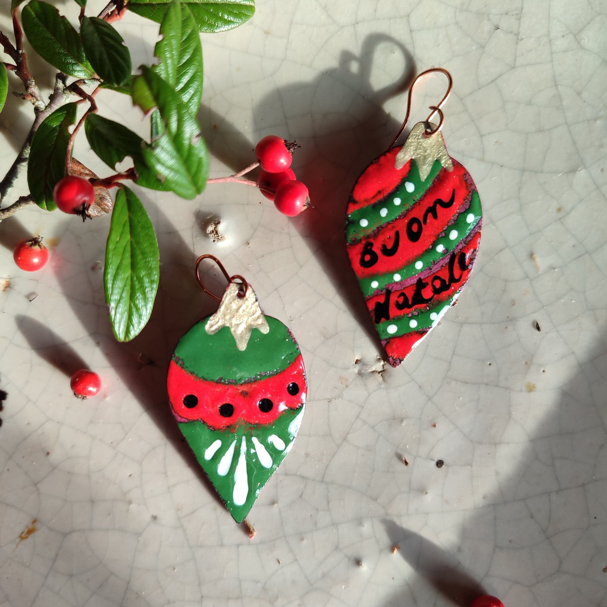 Realizzati interamente a mano in RAME smaltato, dipinti a mano, la monachella è di rame NICKEL FREE. Il retro è liscio color rame.
