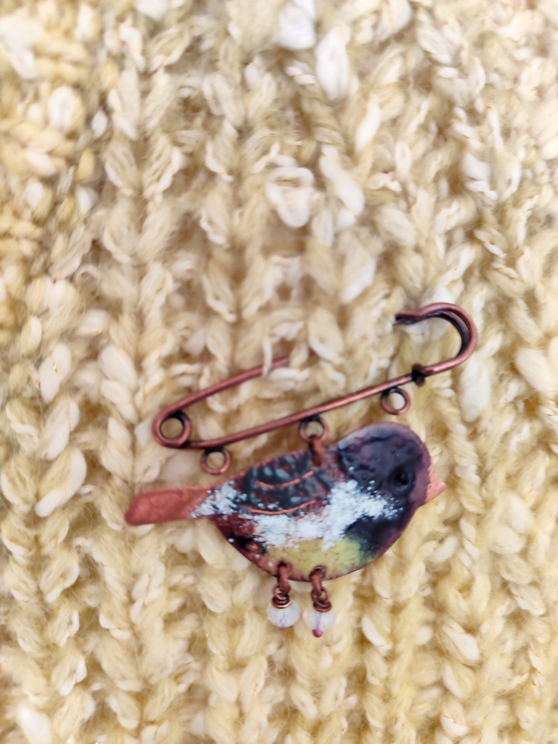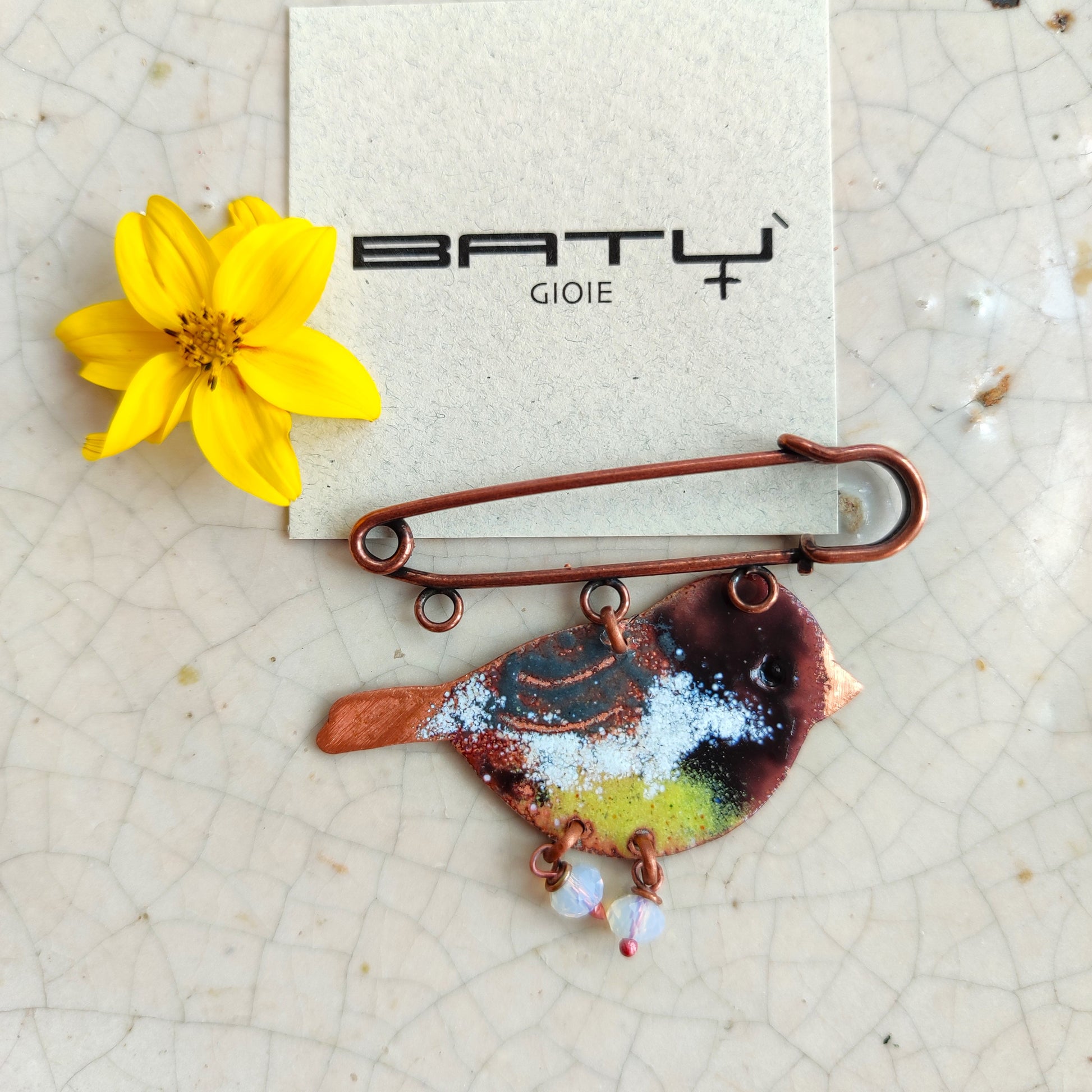 Ispirata al vivace uccellino che porta gioia ed allegria nei nostri giardini, questa spilla è perfetta per chi ama la natura, gli animali e desidera portare un po' di essa sempre con sé.