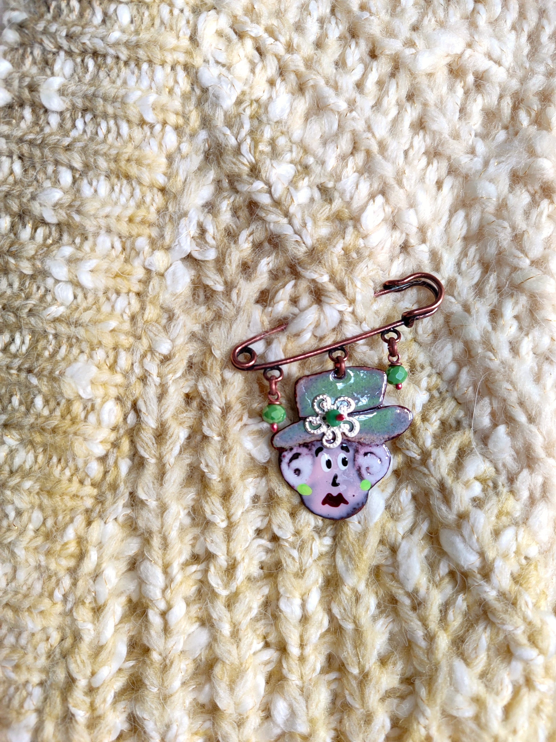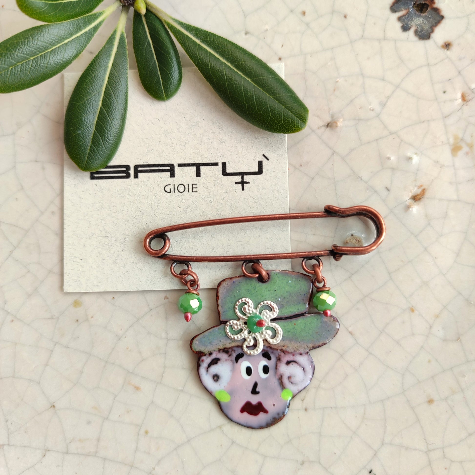 Una spilla dedicata alla Regina Elisabetta con il cappello verde pastello è originale e raffinata, evoca l'eleganza iconica della sovrana britannica. Unisce ironia e classe senza tempo ed un tocco di modernità attraverso l'uso del verde pastello, un colore delicato ma allo stesso tempo distintivo.